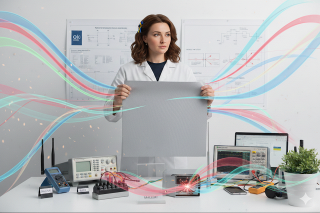 Ткань Фарадея — это гибкий экранирующий материал на основе полиэстера, покрытого металлом.